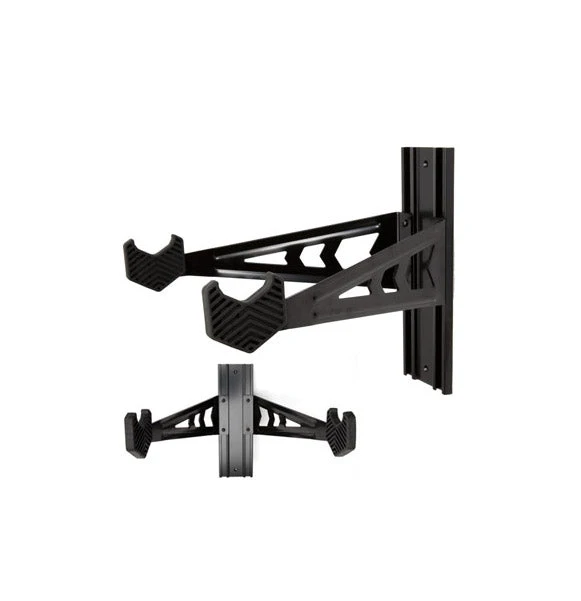 Screws into any standard wall stud, cradle arms can be independently height adjusted to hold all types and sizes of bikes.