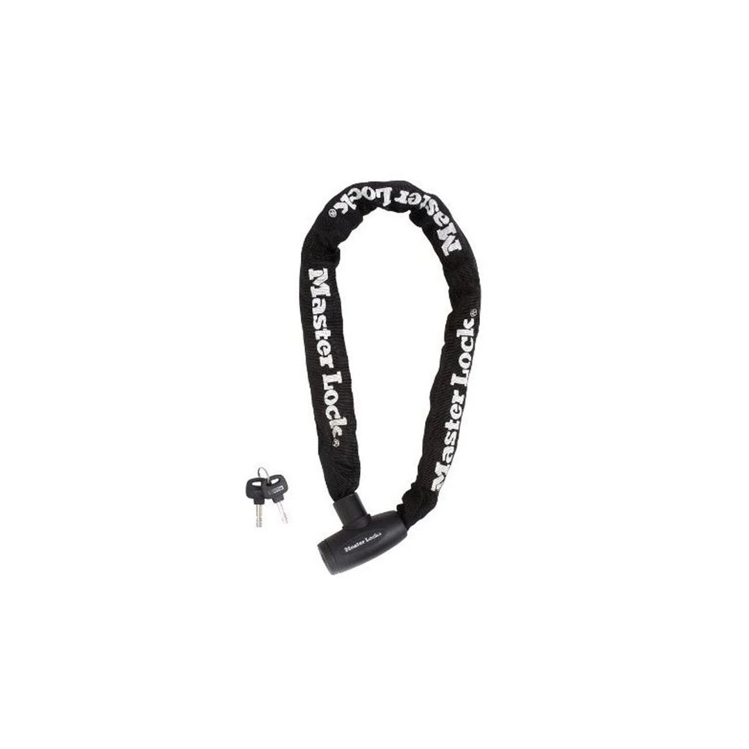 The Master Lock No. 8391EURDPRO Chain with Integrated Keyed Lock is 90cm long and features 8mm diameter hardened steel links, offering resistance to cutting and sawing. The nylon sleeve provides additional protection for equipment. The disc key cylinder provides anti-picking resistance. The Limited Lifetime Warranty provides peace of mind from a brand you can trust.