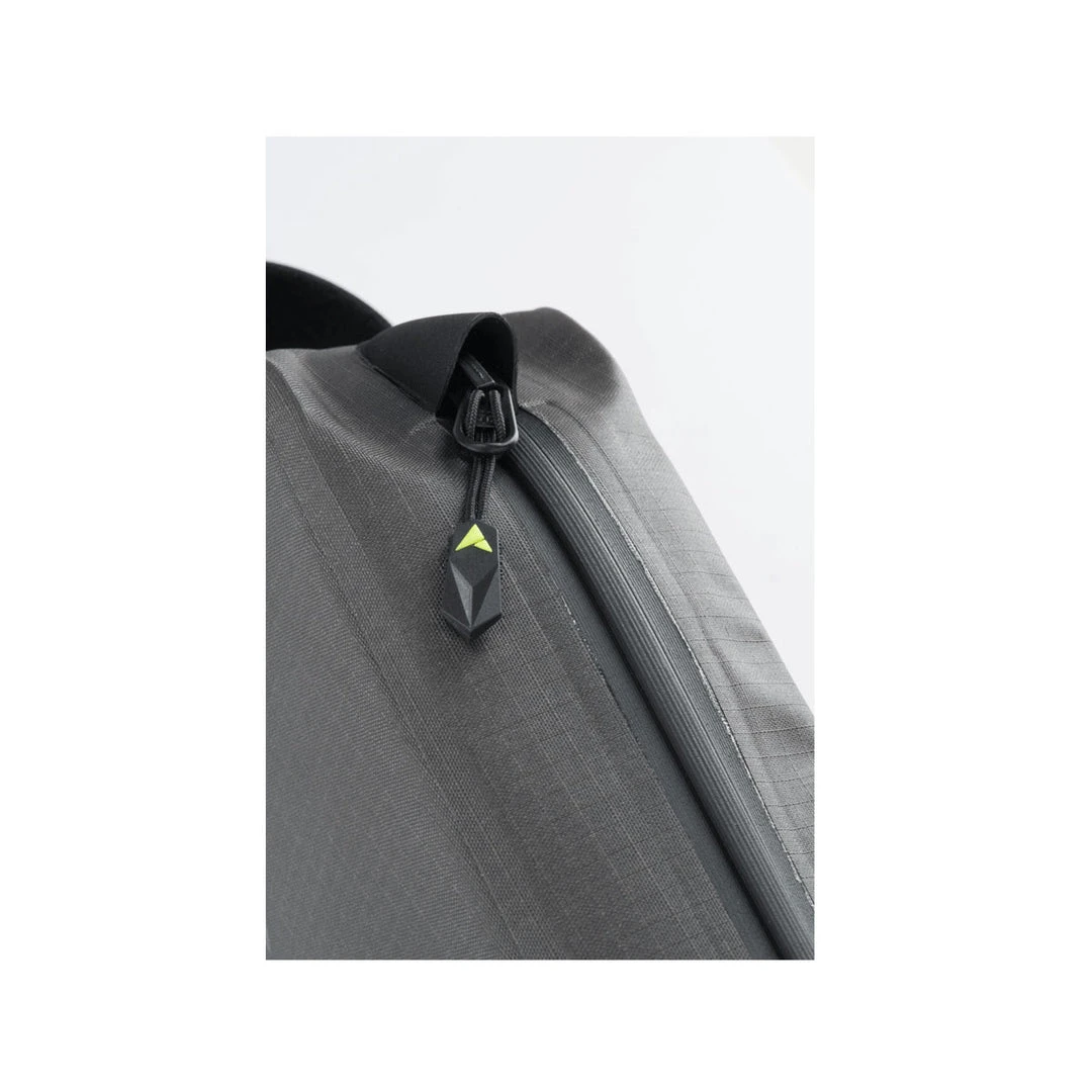 The sealed zip and reinforced material offers protection against even the strongest rain. Positioned towards the front stem or the seat post, it adjusts to different frame configurations and is easy to get on and off.