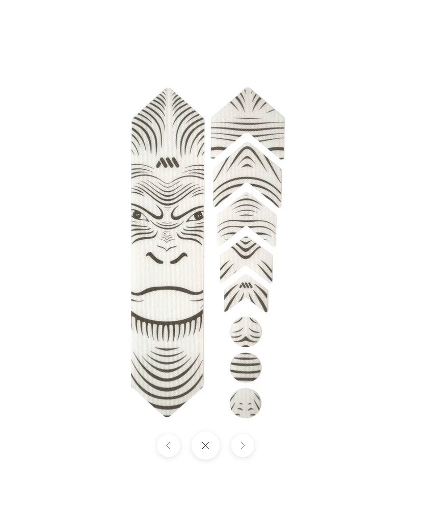 9 parts for a universal protection system: 1 big part for the down tube; 5 arrow parts for extending the down tube protection or for the chainstay or for top tube; 3 circles for cable wear protection.