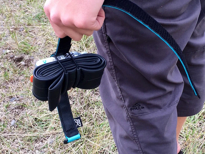 No more juggling, rubber bands or one handed cinching. Our proprietary dual shockcord preload-strap keeps your tubes, levers, inflation more tightly bound to keep your goodies from falling on the ground during installation.