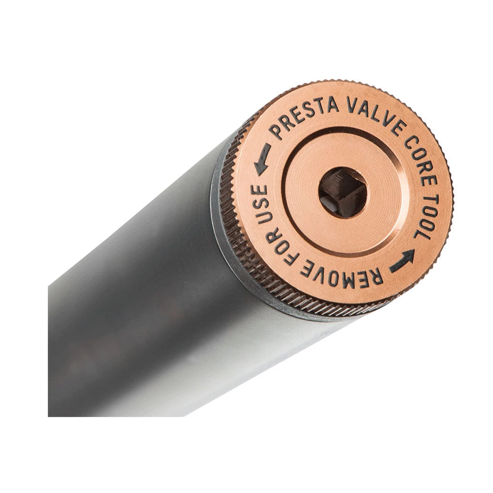 Presta Valve Tool: Get loose on the trail. You can if you want, but your valves shouldn’t. There’s a handy, machined valve core tool right in the pump’s base to keep everything snug.