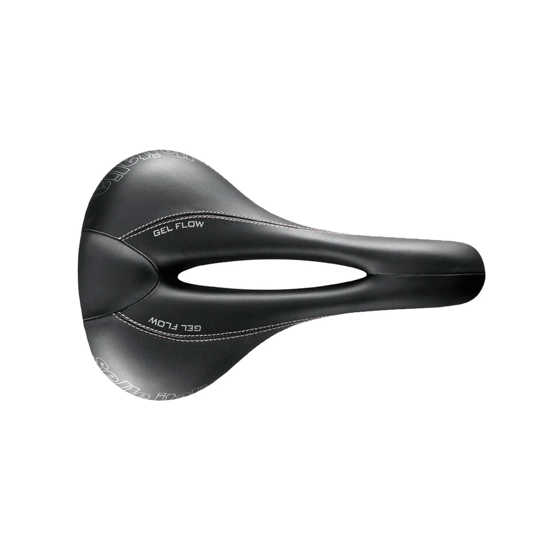 Gel Flow: The special Gel Flow anatomic cut-out provides excellent comfort to “soft tissue” areas by offering greater flexibility at the front of the saddle. Combined with a thin layer of silicon gel it absorbs all road vibrations.