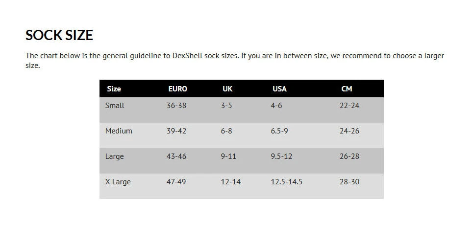 An allround element repellent sock suitable for any outdoor activitiy. Using Dri-release Merino Wool liners this sock offers a combination of quick drying, moisture wicking and odour elimination technology. With a cushion terry loop footbed for extra comfort in addition to all the usual features and benefits associated with Dexshell.