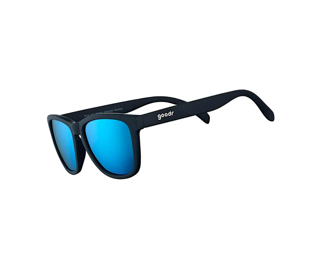 After procuring the requisite saltwater taffy/mescaline composite they demand to fill the holes in their souls, Mick and Keith went for a jog in the black of night and came across a river so blue they could barely believe it. Inspired by that Legendary night we created these black and blue sunglasses.