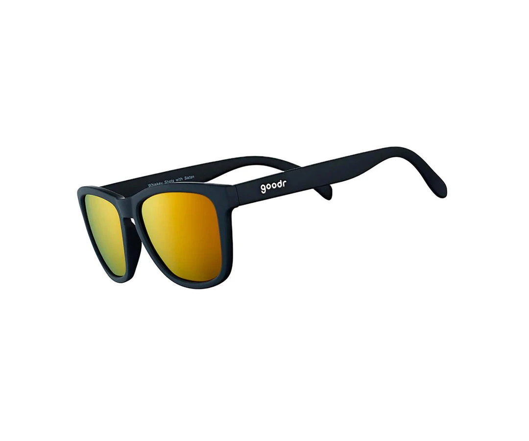 You read that correctly. We are encouraging you to drink some of that sweet amber liquor with the Prince of Darkness. Don’t let Satan’s reputation (or love of ironic eternal punishments) scare you away; he just wants to be your running buddy. So go on, throw on these amber and black shades and do some Whiskey Shots with Satan.