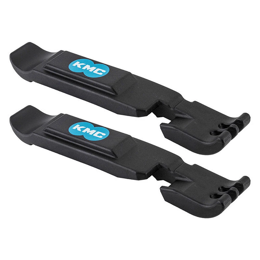 An intuitive, high quality and useful multi-tool from KMC. It combines a set of strong and durable tyre levers with an easy to use chain link remover. The tool has been perfectly designed to be able to perform both tasks with ease so neither job will suffer due to it being a multi-tool. The central pin of the missing link remover can also be used to put pressure on the valve to deflate the tyre when being changed over.