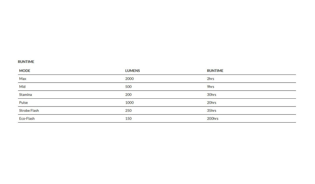 Charge your devices – Rear of the light is a USB rechargeable power bank. Use this to charge your phone, GoPro or cycle computer on the go. 1 hour riding @2000 lumens means you can almost fully charge your iPhone twice. Charge time 7 hours.