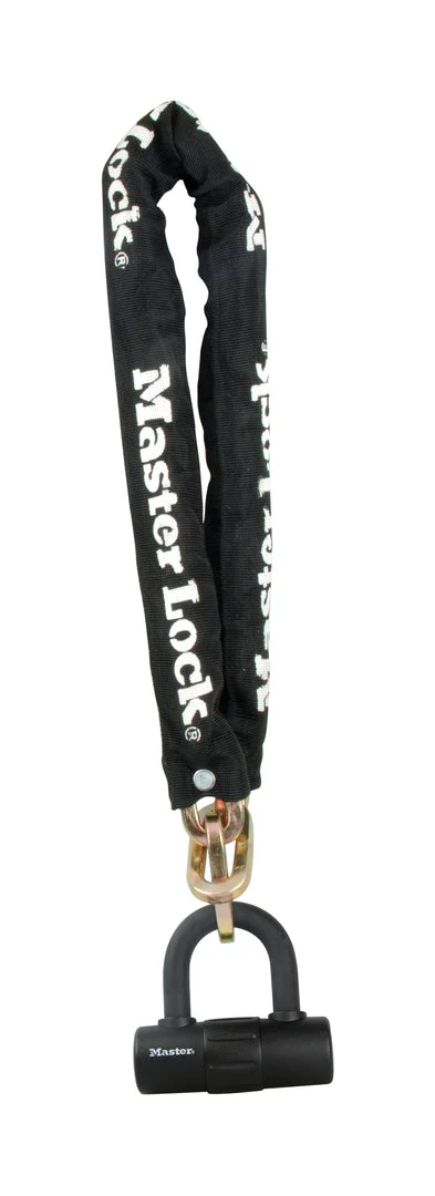 The Master Lock No. 8234EURDPRO Chain with Mini U Lock is 90cm long and features 10mm diameter hardened steel links, offering resistance to cutting and sawing. The nylon sleeve provides additional protection for equipment. The mini U lock features a hardened steel body for maximum strength and reliability. The 14mm diameter shackle is made of hardened steel for maximum resistance to cutting and sawing. The high security disc cylinder prevents picking and the dual locking levers provide resistance against prying and hammering. The lock protection offers a weather proof. The Limited Lifetime Warranty provides peace of mind from a brand you can trust.
