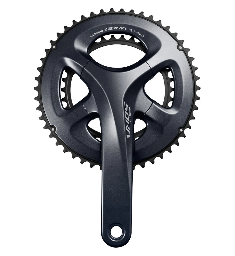 2-piece design double-ring 9-speed chainset from the excellent value Sora range.