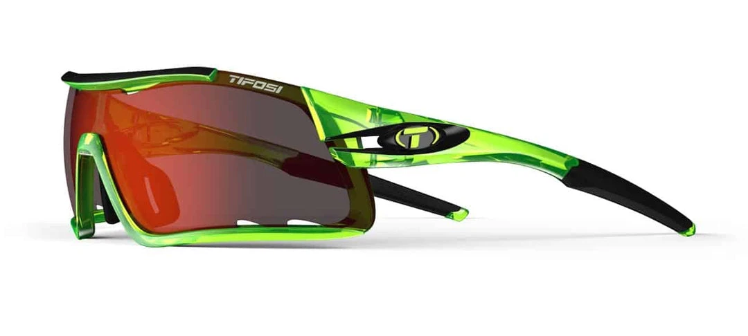 The captivating Crystal Neon Green Davos comes equipped with Tifosi’s highly mirrored, hydrophobic Clarion Red, All Conditions Red, and Clear Interchangeable lenses