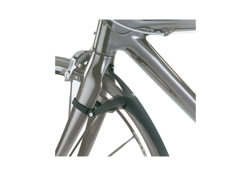 The DeFender™ RC1 / RC11 road fender set complements any road race bike. The RC1 front fender has a unique quick release bolt clip and the RC11 rear fender has a simple and secure mount that removes in seconds. The DuaLink angle adjustment allows for optimized fender position providing maximum protection from road spray and grime. The DeFender™ RC1 / RC11 set is made of high impact plastic weighing only 39 g / 117 g and the highly polished underside prevents dirt buildup. Fits road tires up to 700 x 25c.