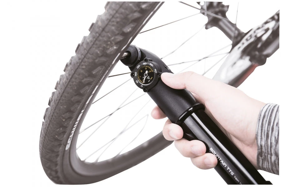 This pump quickly fills MTB tyres with it’s large volume barrel, but also easily reaches higher pressures thanks to Twin Turbo technology which uses both strokes to compress air to deliver high pressure output saving time and effort.
