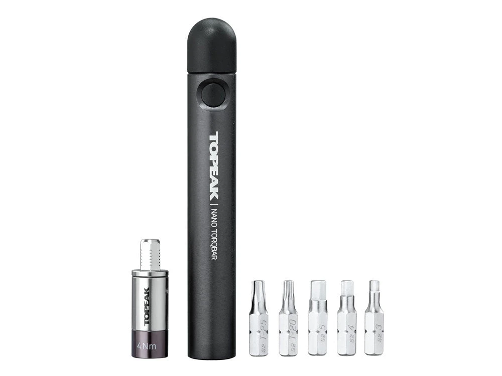 The Nano TorqBar is the slimmest preset torque wrench available, but don’t let its size deceive you. It is a precision-crafted, high quality tool for either the home mechanic, professional bike shop, or your own jersey pocket. Its advanced torque limit release design consistently applies precise torque values on component bolts for safety and prevents damage to expensive carbon parts. Includes 4, 5 or 6Nm preset TorqBit and the 5 most popular tool bits (3 / 4 / 5 mm hex & T20 / T25 Torx. Two of your favorite bits can be carried in the handle of the Nano TorqBar for immediate use and even greater portability during rides.