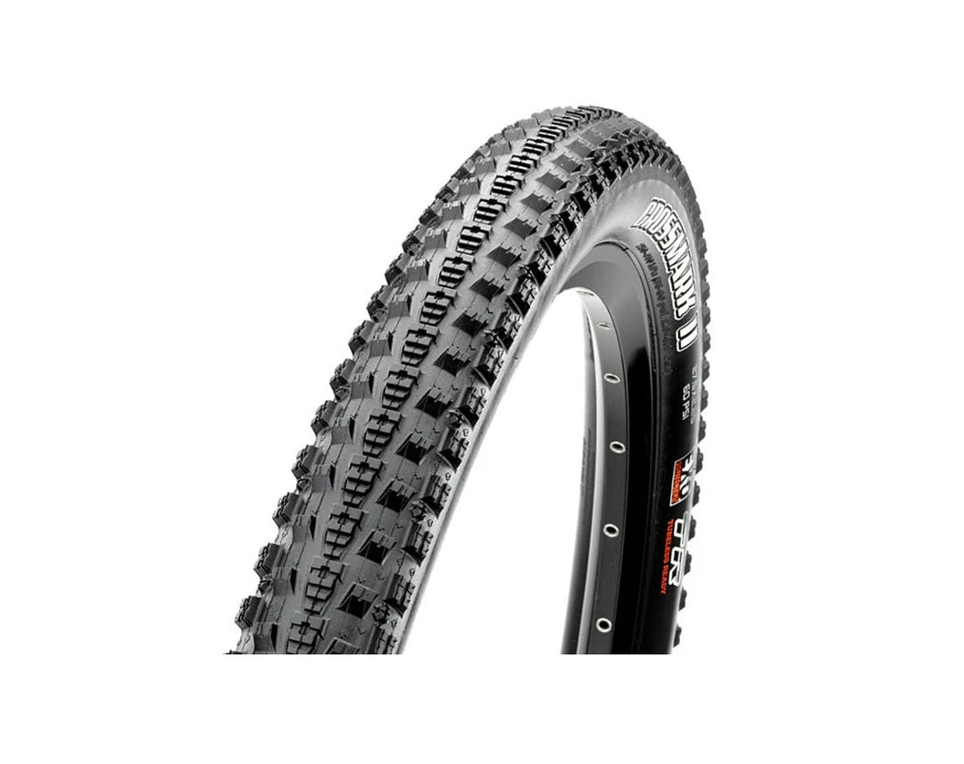 The Crossmark is the dramatic evolution of the cross country racing tyre. The nearly continuous centre ridge flies on hardpack, yet has enough spacing to grab wet roots and rocks. The slightly raised ridge of side knobs offers cornering precision never before seen on a tyre this fast. Compound: DUAL: Two compounds comprised of a hard, longer lasting centre and a softer gripping shoulder.