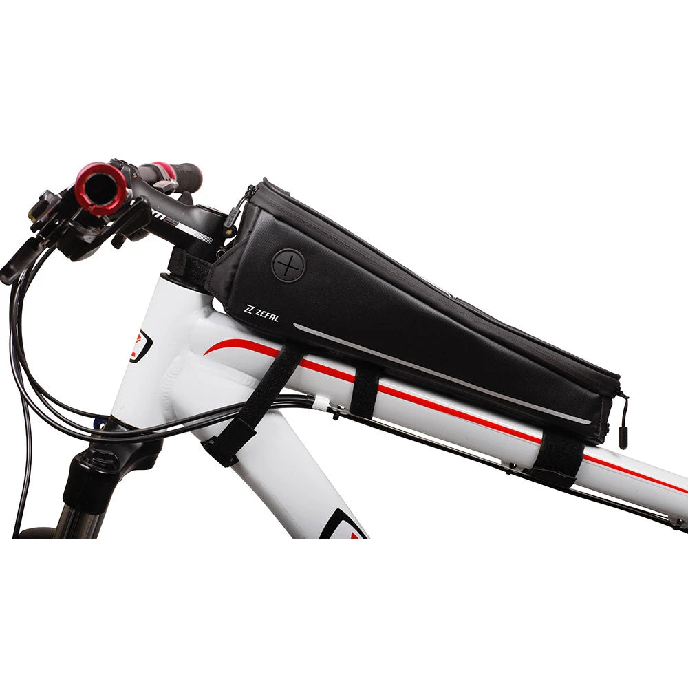 2 in 1, the Console Pack is a top-tube bag with an integrated compartment for smartphones. Easy to install on the tube, it has a zippered compartment to carry most accessories (repair kits, CO2 cartridges, energy gels, keys…). An extra strap is provided, allowing the bag to be mounted on all types of frames. Access to the touch screen allows you to look and record your data. The rain-cover guarantees protection during wet conditions.